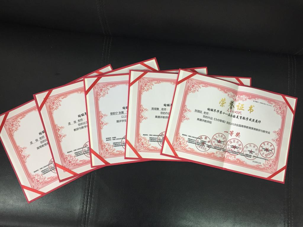 我校接到组委会通知后,按照大赛组委会要求面向全校师生征集作品,遴选出30余件作品。艺术教育中心组织相关教师对遴选出的作品进行了评选最终评选出20件作品参加比赛。通过激烈角逐,最终我校获得一等奖2项,二等奖4项,三等奖6项。