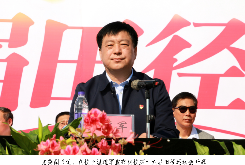 裁判员代表张宇和运动员代表严春阳分别宣誓。党委副书记、副校长温道军宣布我校第十六届田径运动会开幕。