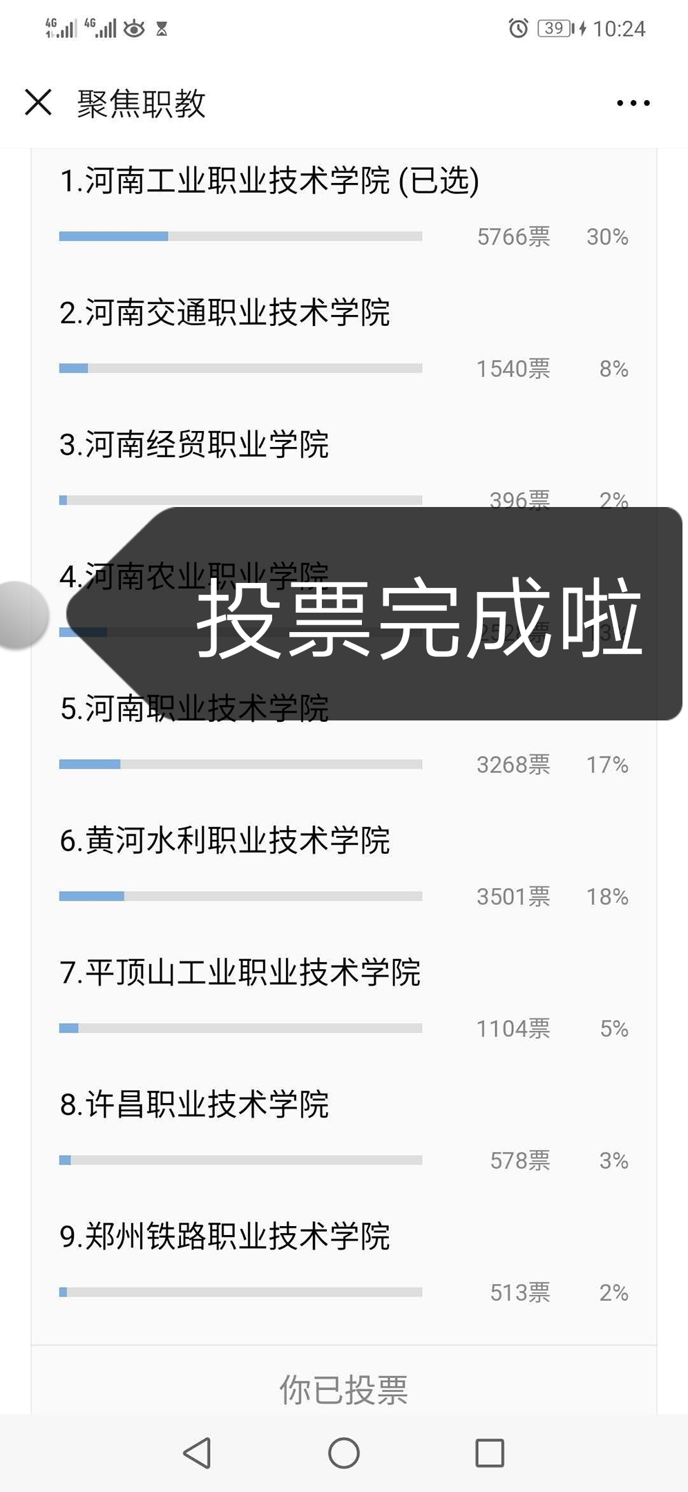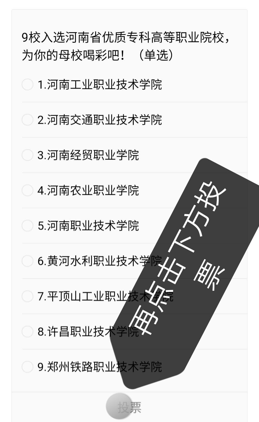 方法一:复制链接,从手机浏览器打开,为1号河南工业职业技术学院投票。https://mp.weixin.qq.com/s/R0saokSv67kg2Uvx_HFwxQ