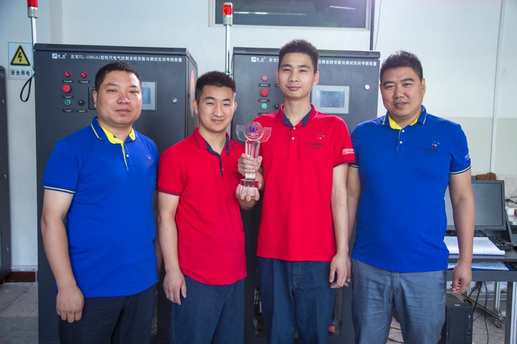 为了备战2019年全国职业院校技能大赛,张世通谢绝了实习单位的工作邀请,回到学校。指导老师将技能大赛中反映行业前沿、体现岗位需求的内容充实到课堂上,项目化教学。学校安排张世通等同学到电气设备厂商那培训学习,与兄弟院校进行“比武练兵”,聘请企业的技术工程师到校指导,为他参加2019年全国职业院校技能大赛打下了坚实的基础。