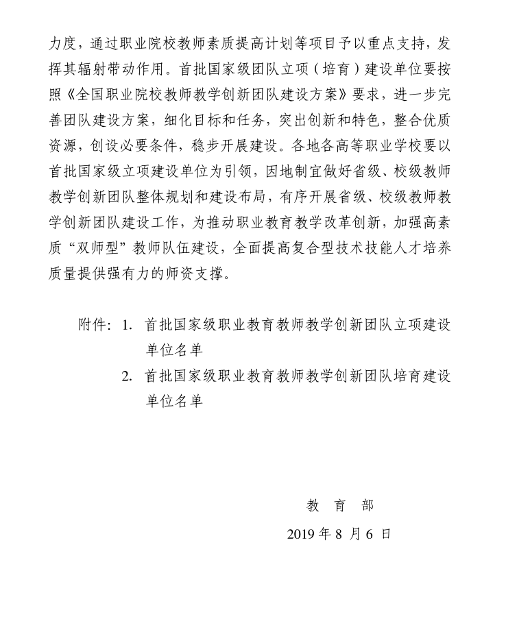 根据《教育部关于公布首批国家级职业教育教师教学创新团队立项建设单位和培育建设单位名单的通知》(教师函〔2019〕7号),全国首批国家级职业教育教师教学创新团队立项建设单位共120个,其中,河南共有4所高职院校入选。
