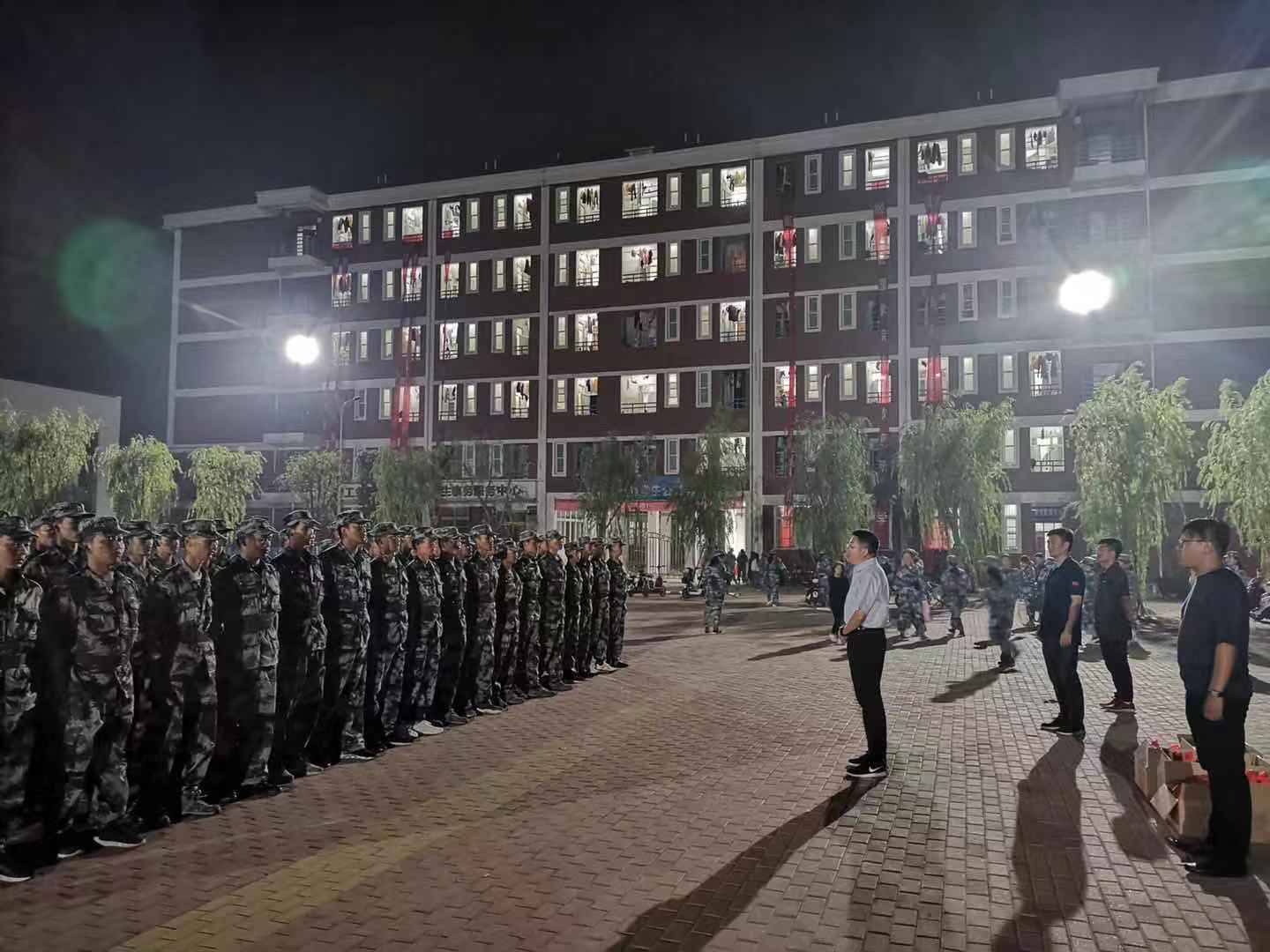 在2019级新生军训工作紧张有序进行之时,9月12日晚9点,王仁伟副校长在学生处、团委工作人员陪同下,到新生军训场地,代表学校慰问大学生军训教官团。