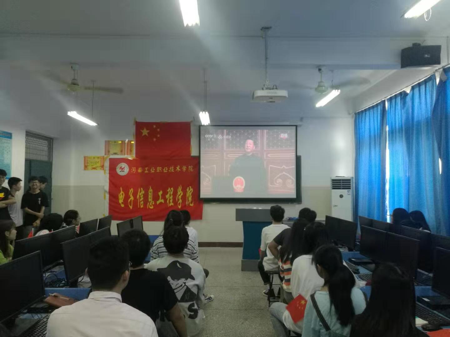 10月1日上午10时,学校在孔明路校区第一会议室主会场组织全体校领导和中层干部100多人收听收看“庆祝中华人民共和国成立70周年大会”盛况,与此同时,全校31个党总支、直属党支部和团委分别设立分会场组织教师、学生集中收听收看习近平总书记在庆祝中华人民共和国成立70周年大会上的讲话和阅兵式、分列式。