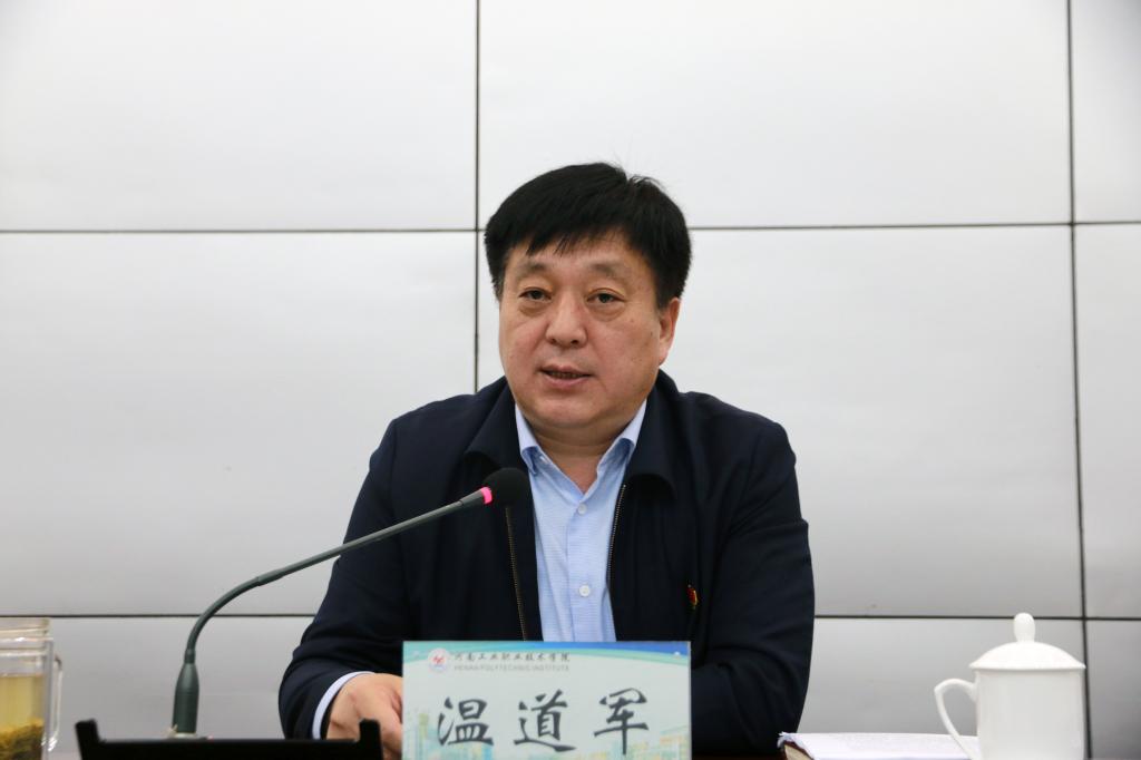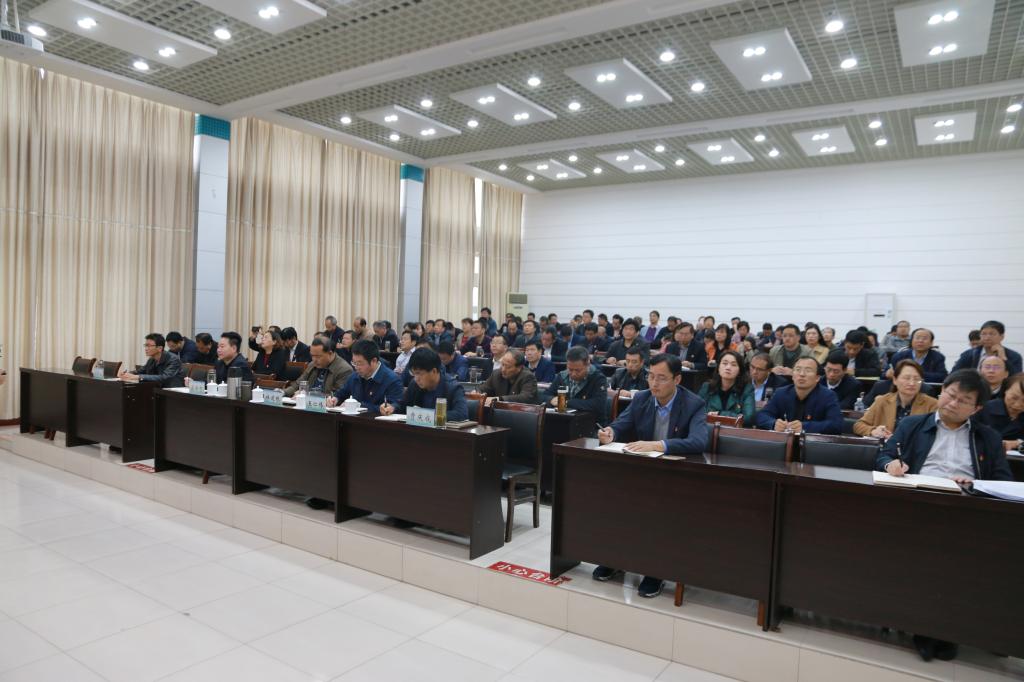 10月15日下午,党委书记温道军在孔明路校区第一会议室以《不忘初心、牢记使命,为实现高水平院校建设目标而不懈奋斗》为题为全校党员干部讲党课。副校长杜建根主持。