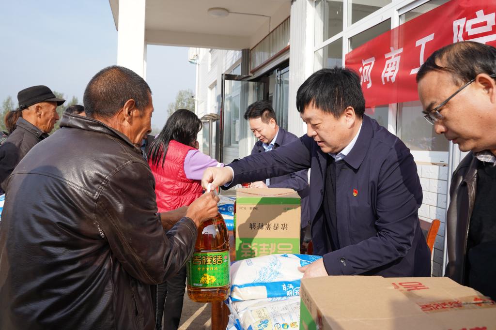 10月17日是第6个全国扶贫日,也是第27个国际消除贫困日,我校党委书记温道军,副校长杜建根、王仁伟、刘纪山、贾庆成、工会主席屈保中带领党政办、组织部、纪委、宣传部、人事处、学生处、国资处、科技处等相关部门负责人分别到定点帮扶村——方城县杨集乡河坡村和责任帮扶村:董楼村、李楼村、党庄村、尹庄村,走访慰问贫困户及看望驻村干部,方城县杨集乡党委书记岳太斌一同走访慰问。