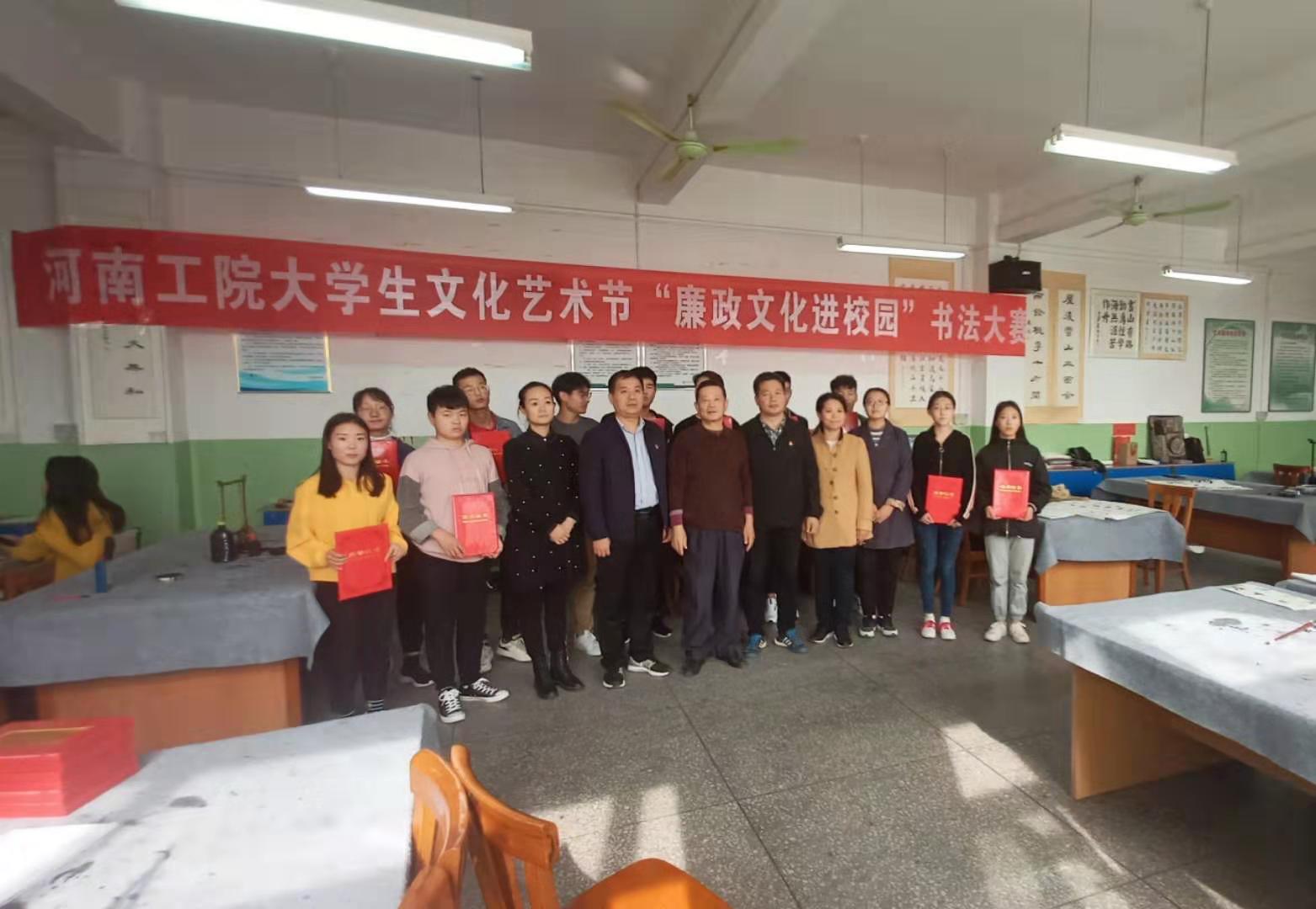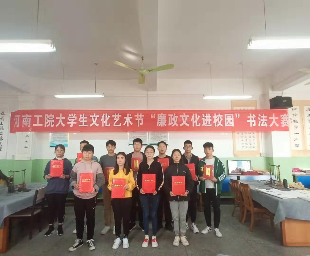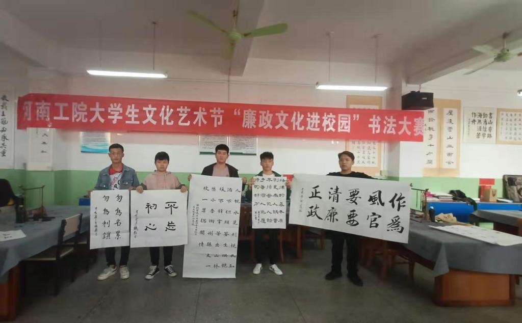 为进一步加强大学生社团的思想政治引导,在校园营造讲廉洁、树文明、扬清风的良好氛围,11月1日中午,我校开展了大学生文化艺术节“廉政文化进校园”书法大赛。本次大赛由校纪委,校团委联合主办,经管学院协办,书画协会承办。校纪委副书记王超,校团委书记周大鹏,书法教师周林,经管学院辅导员老师出席本次比赛并担任评委。