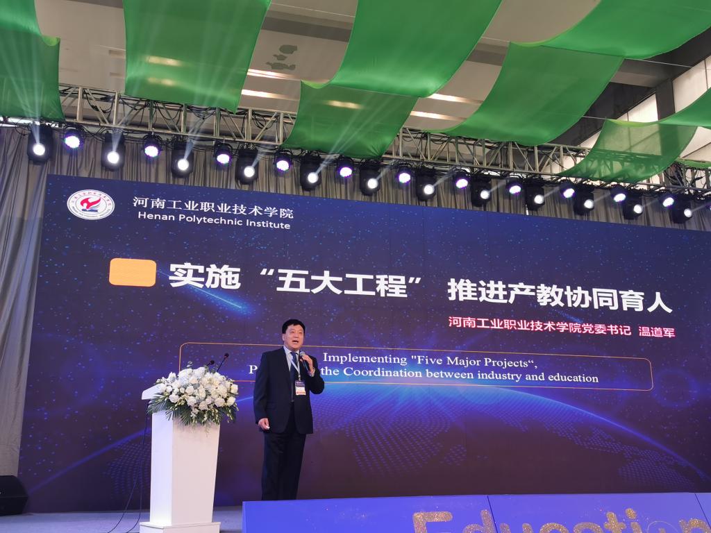 我校党委书记温道军受组委会邀请在国际峰会论坛上发表了“实施五大工程,推进产教协同育人”主题演讲。通过实施“集团化办学、专业群建设、双元育人、协同创新、国际教育合作”五大工程,分享了产教融合协同育人的实践与取得的成效,为职业教育发展建言献策。