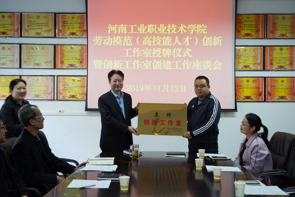 11月12日上午,在机械工程学院会议室举行了河南工业职业技术学院劳动模范(高技能人才)创新工作室授牌仪式暨创新工作座谈会,工会主席屈保中,创新工作室所属学院党政领导、分工会主席,省、校两级创新工作室负责人等参加了会议。仪式由工会副主席王劲松主持。