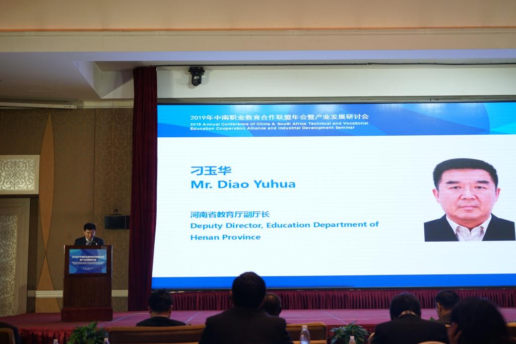 11月15日,中国—南非职业教育合作联盟年会暨产业发展研讨会在开封举行。活动由教育部中外人文交流中心主办、黄河水利职业技术学院承办。教育部中外人文交流中心主任杜柯伟、副主任杨晓春,赞比亚中国友好协会秘书长穆万萨,河南省教育厅副厅长刁玉华,黄河水利职业技术学院党委书记许琰、校长祝玉华出席开幕式。联盟理事单位、省内外高职院校、企业代表150余人参加会议。我校党委委员、副校长杜建根和科技外事处副处长刘彦华参会。