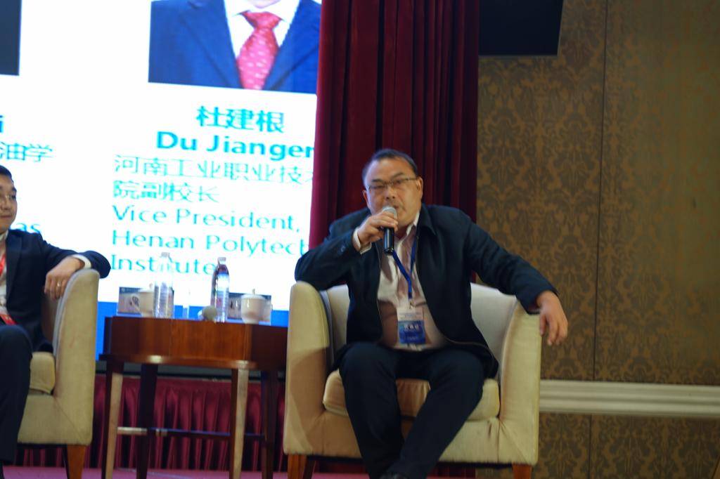 杜建根在圆桌论坛“搭建平台促进人文交流与产业合作同频共振”议题做了发言,介绍了我校的基本情况和发展历程,从与美国GE、德国德玛吉合作共建实验实训平台,到与俄罗斯开展合作办学项目、招收留学生,下一步建设国际化人才培养基地,提升“走出去”平台等三个阶段分享了我校搭建国际交流合作平台、与产业合作的做法和经验。
