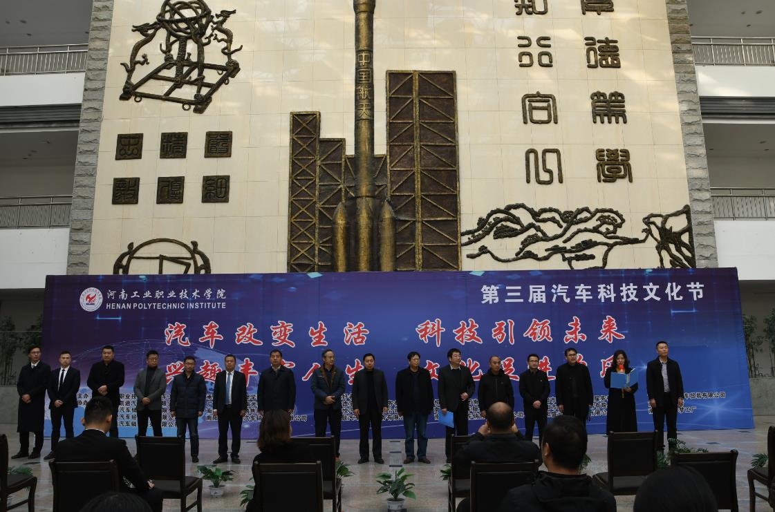 11月18日下午,由汽车工程学院主办的第三届汽车科技文化节开幕式在图书馆二楼隆重举行,学校副校长王仁伟,南阳农业职业学院汽车工程系主任王传凯、南阳市技师学院汽车系副主任顾鹏展、河南省经济管理学校汽车工程系副主任黄庆、南阳市工业学校机电工程系副主任吕尚礼,我校团委、学生处、汽车工程学院负责同志,以及19家企业代表共同参加,开幕式由汽车工程学院党总支副书记涂豫主持。