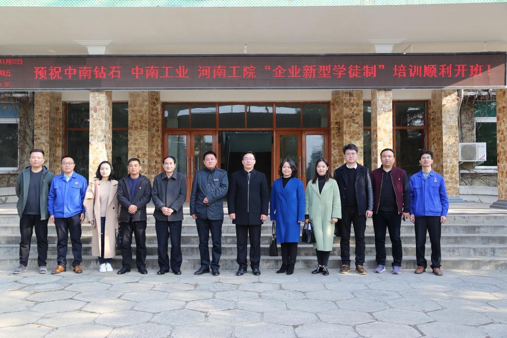 2019年11月22日,我校与中南钻石有限公司、河南中南工业有限责任公司“企业新型学徒制”培训班开班典礼在中南公司办公楼四楼会议室隆重举行。方城县劳动就业输出培训管理局局长王健、副局长谷琳、河南中南工业有限责任公司党委书记郑永强、中南钻石有限公司工会主席周子平、继续教育学院院长莫宇芬及相关部门负责人出席了开班典礼。首期共计120名培训学员参加了开班典礼,会议由中南钻石有限公司人力资源部部长刘金超主持。