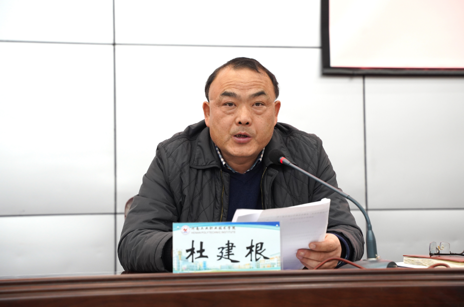 杜建根就落实会议精神提出四点要求:一是要认真学习、深刻领会温书记讲话精神,强化“四个意识”,进一步提高政治站位,切实履行党建主体责任;二是要围绕学校中心工作,加强党建工作创新,提升党建工作实效;三是要加强业务学习,切实提高党建工作能力和水平;四是要加强党风廉政建设,持续紧盯重要节点纠正“四风”,推动中央八项规定精神落地生根,以学校党建工作的高质量引领事业发展的高质量。