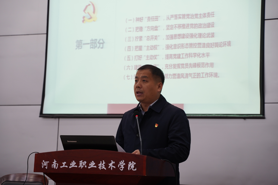 温道军指出,对照全面从严治党要求,各党总支、直属党支部在党建任务落实上还存在着一些需要改进的地方。主要表现在:各党总支、直属党支部对“责任田”重视不够,在抓党建主体责任落实还存在薄弱环节;抓思想理论学习不到位,学原文、学原著、学深悟透、联系实际学还不够;组织生活制度落实不够严格,部分党支部“三会一课”流于形式;党建工作缺乏特色,缺少品牌;党建工作与教育教学、科研、管理、服务等工作结合不够紧密。针对上述存在的问题,温道军对加强我校基层党建工作提出了三点要求:一是提高政治站位,增强做好党建工作的紧迫感和责任感。要聚焦主业主责,做到主角主动,深耕党建“责任田”,切实扛牢扛实党建政治责任。二是夯实基础,发挥党支部战斗堡垒作用。认真贯彻落实“两个条例”,以学校党支部建设“两化一创”强基引领行动计划为引领,以两个“全国党建工作样板党支部”为榜样,进一步加强党建基础工作。三是进一步强化问题导向、任务导向、发展导向,围绕问题,扎实开展整改。