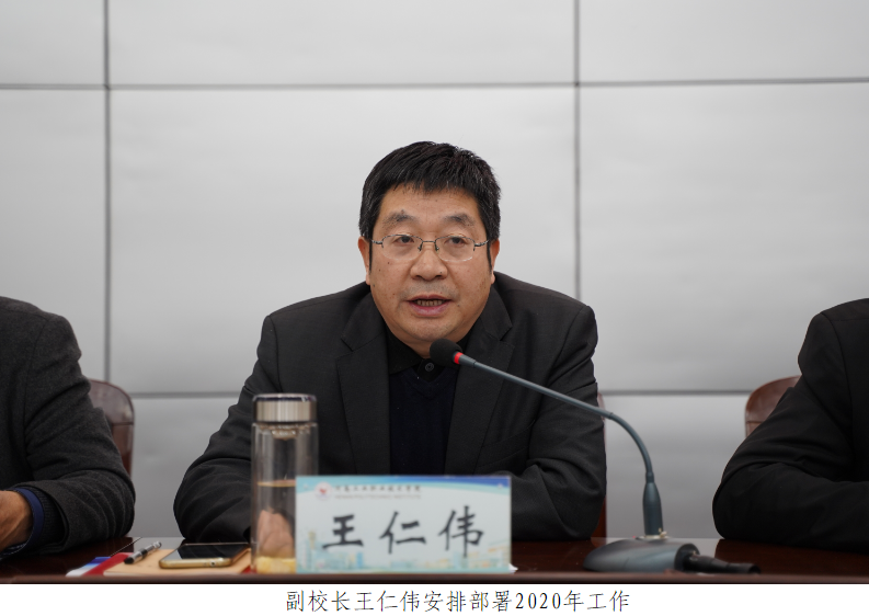 党委书记温道军在讲话中肯定了一年来学校各项工作特别是招生就业创业工作所取得的成绩,他指出,2019年是职业教育领域变革最多、大事要事最多的一年,在良好的发展环境下,学校各项事业呈现出硕果累累、亮点纷呈的局面,招生和就业创业工作也做出了成绩。面对成绩,我们需要认真的总结经验,准确把握当前所面临的机遇和挑战,反思工作中存在的问题和不足,在新形势下拿出新举措,认准目标,及早行动,打好关键牌,扎实做好2020年招生和就业创业工作。一是要以思想教育为根本,落实立德树人根本任务。牢牢坚持社会主义办学方向,坚持为党育人、为国育才。二是要以教育教学为中心,切实提高人才培养质量。持续深化教育教学改革,全面加强创新创业教育。三是要以体制机制为关键,不断提升招生和就业创业工作水平。完善工作机制体制,严格落实工作责任。四是要以搞好服务为重点。进一步优化指导服务,全面提升服务质量。温书记强调,成绩属于过去,希望全校上下总结成绩、创新思路,不忘初心、牢记使命,始终保持忧患意识和清醒头脑,激发更加昂扬的斗争、采取更加有力的措施,整装再出发、奋进新征程,力争2020年再创辉煌。