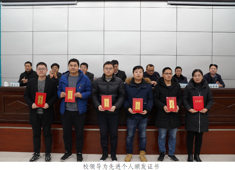 会上,副校长贾庆成宣读了表彰决定,校领导为获奖单位和个人代表颁发了奖牌和证书。机电自动化学院院长张季萌、城市建设学院院长范国辉分别代表招生和就业创业工作先进集体,在会上做了交流发言。副校长王仁伟结合我校2019年普通专科招生和毕业生就业创业各项数据,从基本情况和存在的问题两个方面系统总结和回顾了学校2019年招生和就业创业工作,同时对做好2020年的工作进行了具体安排和部署。