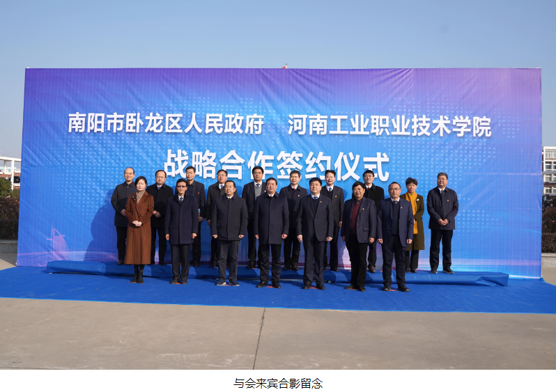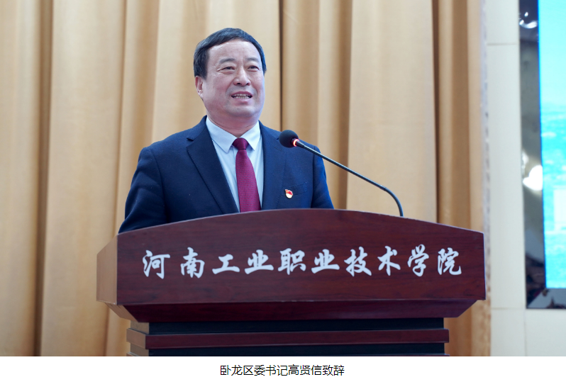 卧龙区委书记高贤信在签约仪式上发表致辞。他说,与河南工业职业技术学院签署战略合作协议,既是学校对卧龙区的殷殷真情,也是93万卧龙区人民的深深期盼。高贤信指出,卧龙区是南阳市中心城区的重要组成部分,当前正在争当区域发展的“领跑者”,区委、区政府确立了建设“首善之区、美丽卧龙”的奋斗目标,提出了“三网四化五极”的引领战略。推动卧龙区高质量发展,迫切需要强有力的科技和人才支撑,期盼以此次签约为契机,深化校地合作交流,在挖掘诸葛躬耕文化、助力月季艾草产业发展、统筹众创资源、加快创新创业等方面实现务实合作,从而实现合作共赢、互利发展。