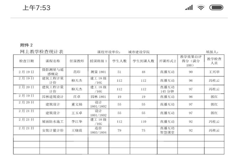 疫情期间,管理人员缺少的不是时间,作为课程学习群体中的一员,相当于亲临各班的网上教学现场,采用“跟、观、听、盯”,对教学资源、教学组织、教学在线时长、师生在线教学活动等细节进行管理,及时进行总结分析、过程指导与经验分享。做到一日一报表,一日一共享,一日一整改。鼓励师生在教学中求进,快速调整提高,适应网上教学,确保教学落实有效。