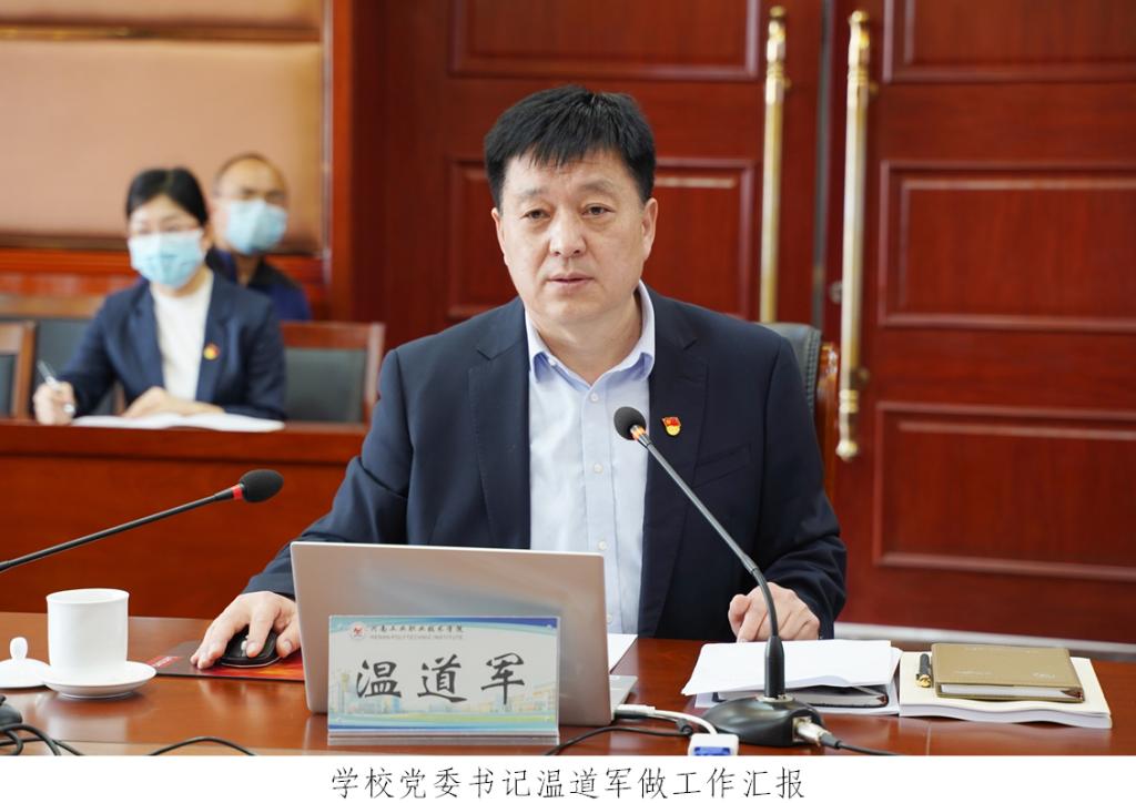 袁玉新对学校近年来在领导班子建设、干部职工队伍建设和内涵发展上取得的成效进行了肯定,希望学校继续坚持全面均衡发展,进一步深化军民融合,打造军工特色亮点,稳步提升在河南省内乃至全国职业院校行列中的地位。