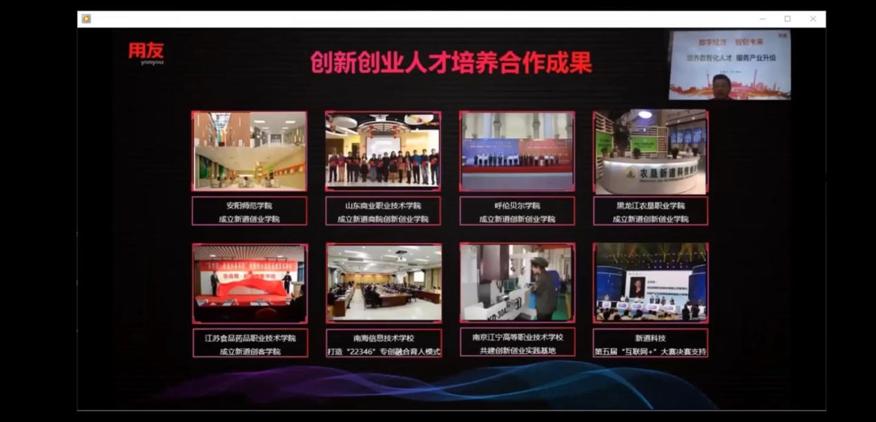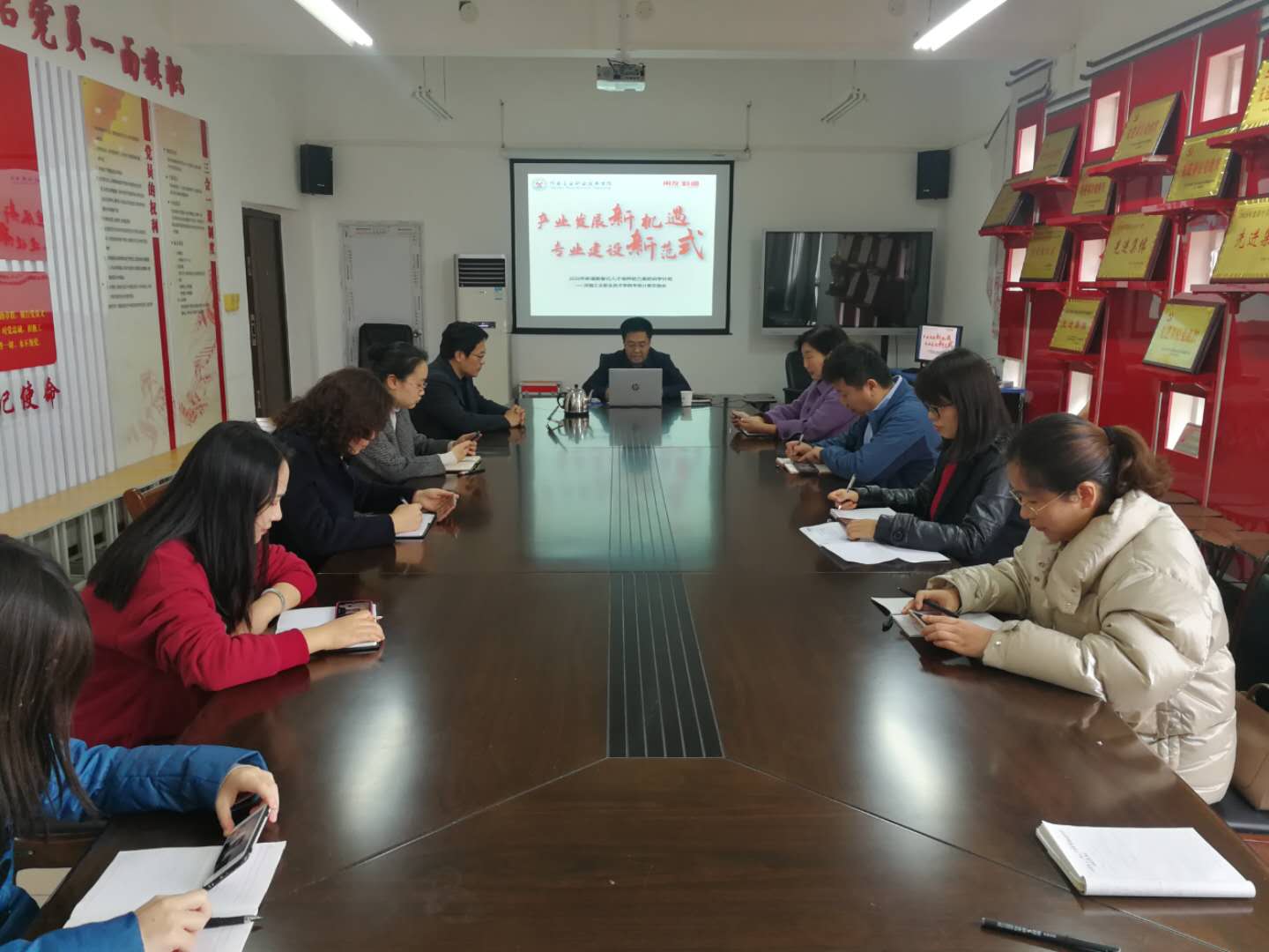 为助力我校“双高校”专业群建设,促进校企合作、产教融合,帮助我院师资团队深入了解企业数智化发展趋势和数智化人才培养路径,2020年4月1日,经济管理学院与用友集团新道科技股份有限公司合作召开“2020年新道数智化人才培养助力高校研学计划——河南工业职业技术学院专场线上直播交流会”。会议采取现场加线上直播的形式,贾庆成副校长出席会议并致辞,新道科技股份有限公司总裁杨晓柏、助理总裁贾大明、项目经理刘锦等企业领导及兄弟院校的专家先后做了报告,经管学院院长杨俊峰及70多名教师参加会议并交流。