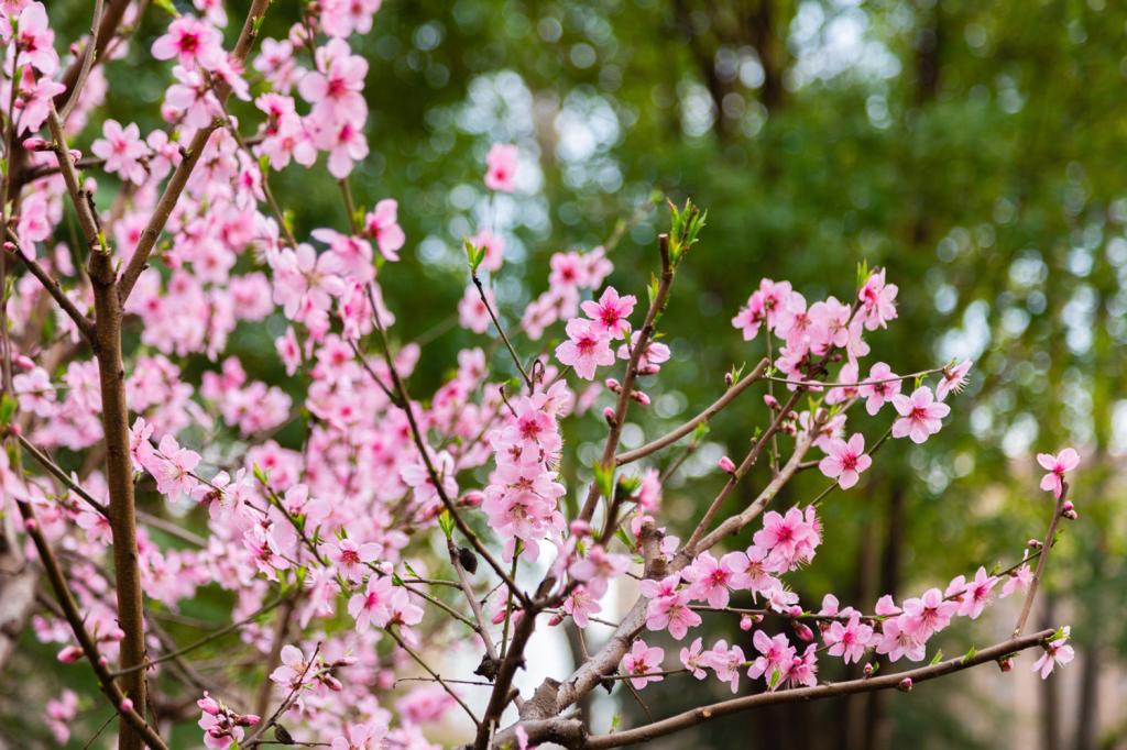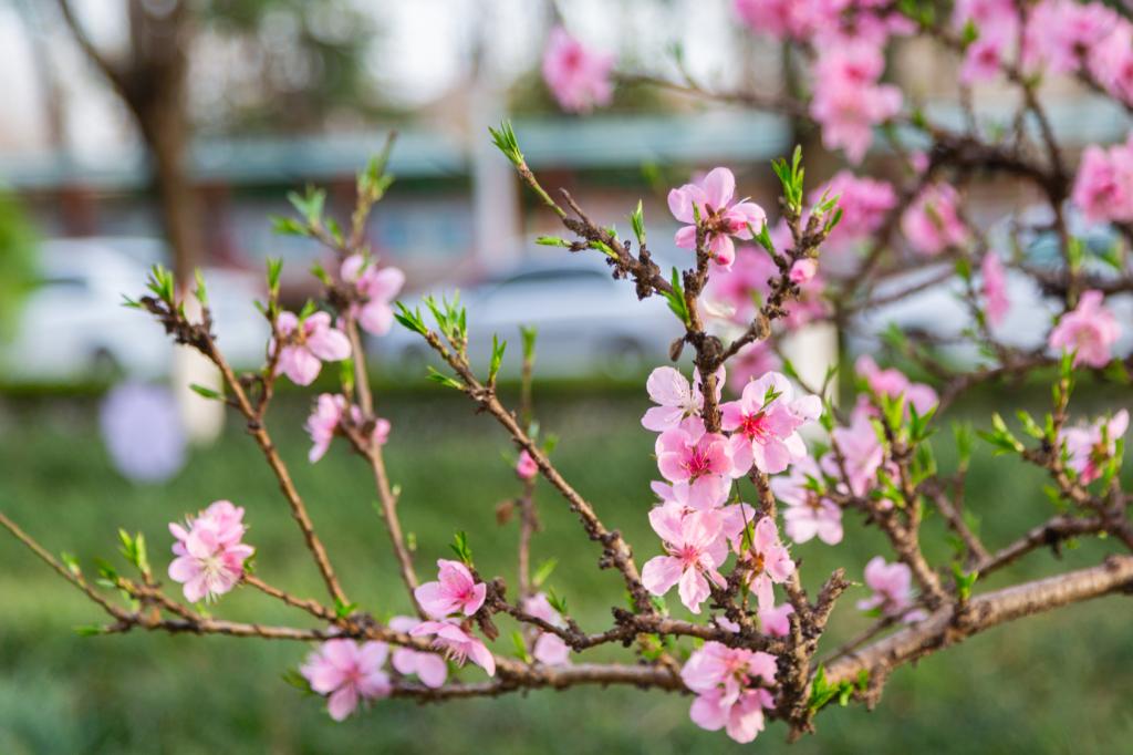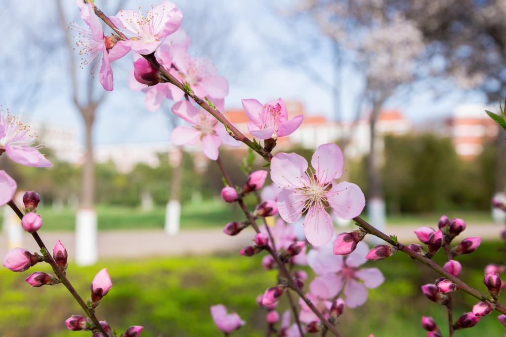 阳春三月 朵朵桃花饰于光影斑斓中