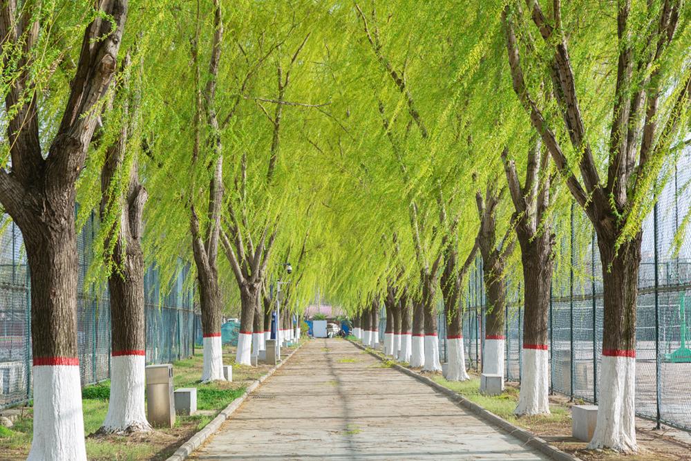 清晨,穿过柳丝飘摇的大道