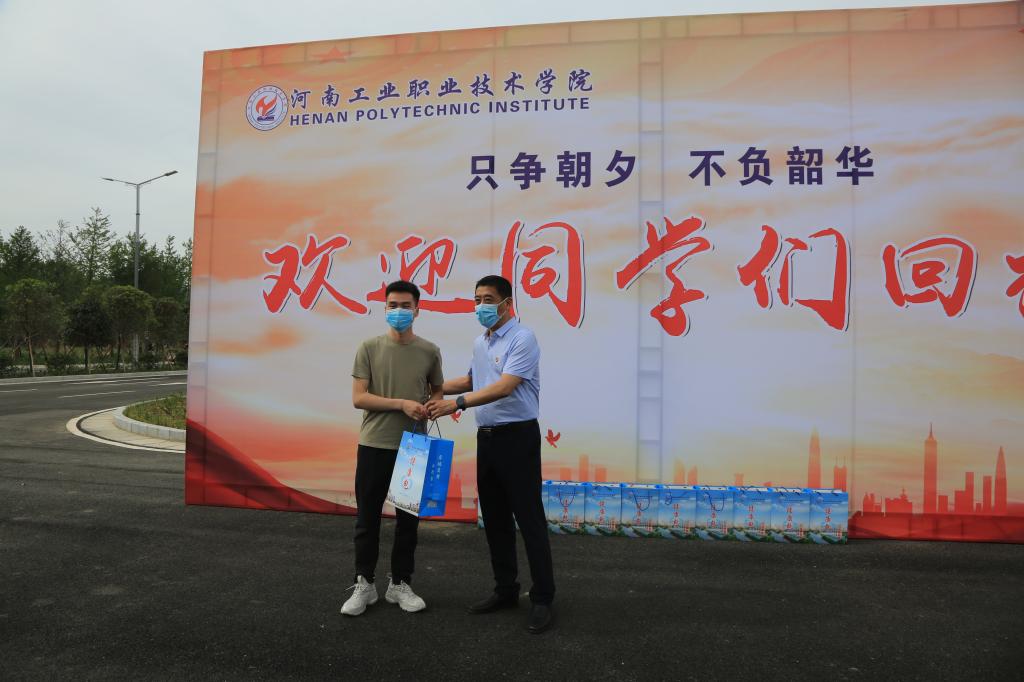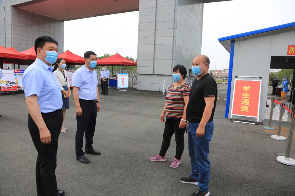 进校后,学校党委书记温道军和校长王伟为返校学生发放内装餐盒、口罩、体温计等物品的暖心健康包,叮嘱同学们做好个人安全防护,调整学习状态,完成各项学习任务。温道军和王伟还与现场学生家长亲切交谈,了解学生在家学习生活的状态,并保证一定给返校的学生们创造一个温馨亲切、舒心周到的学习和生活环境。