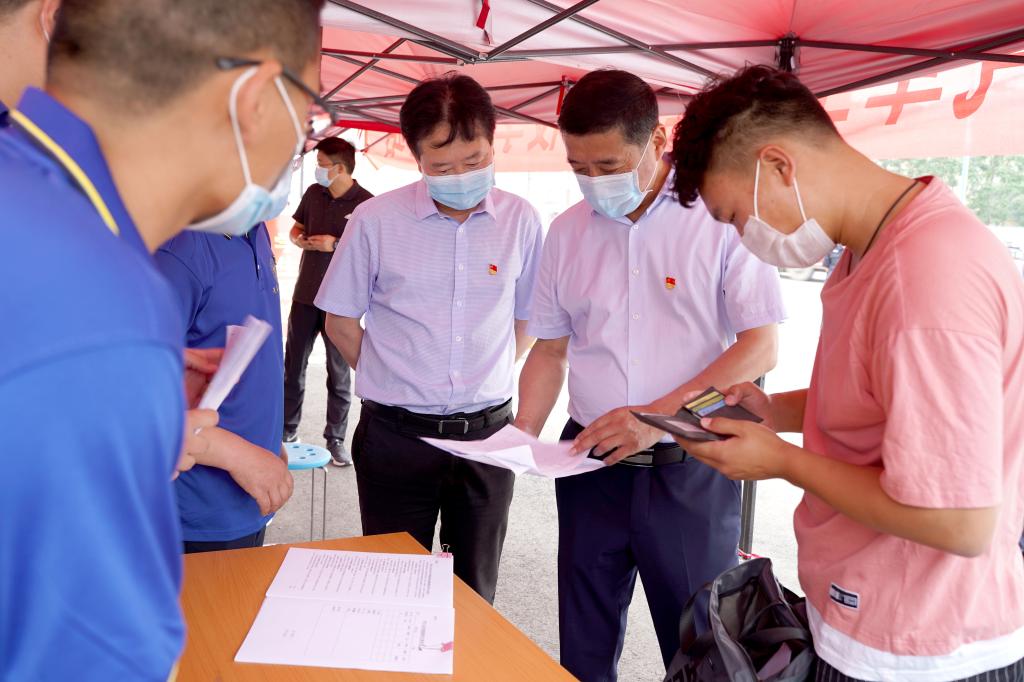 在学生报道现场,王伟认真查看返校学生进校身份核查、体温检测、行李消杀、材料收缴等流程,对学生返校报到过程中的重点环节、风险点和防控点提出了指导意见,强调要严格各项检查流程,确保监测到位、保护充分,切实把好校门入口关,确保第三批返校学生安全返校。