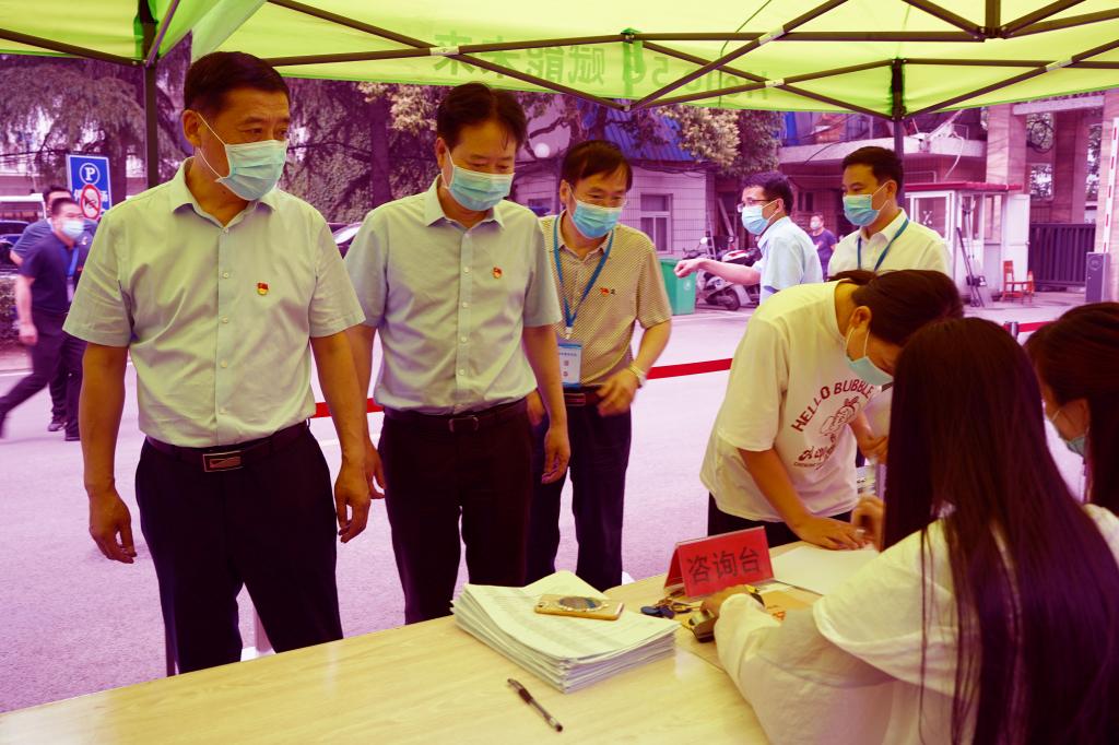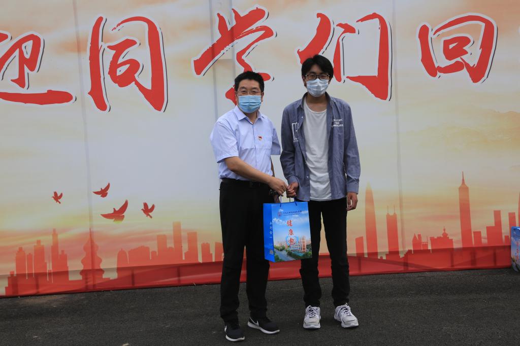 校领导一行先后来到孔明路校区和光武路校区校返校复学迎接工作现场,慰问工作人员,为学生发放新冠肺炎疫情防控“健康包”,同时,对返校复学后学生入校及在校的后勤保障、宿舍管理等情况进行了全面检查。