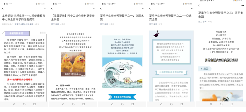 连日来,学校以全省预防学生意外死亡工作推进视频会议精神为指南,前移工作关口,全面排查学校安全工作风险点、消除安全隐患,召开安全稳定工作会议部署重点工作,通过校园网、微信等平台,推送引导学生注重交通安全、消防安全、夏季安全的文章,发布《心理健康教育中心致全体同学的温馨提示》,落细落实校园安全管理相关规定,构建齐抓共管、齐心协力的工作机制,形成全校共同关心关爱学生健康成长的浓郁氛围,确保学校学生安全工作措施得到有效落实。(撰稿/杨爽 编审/王爽)