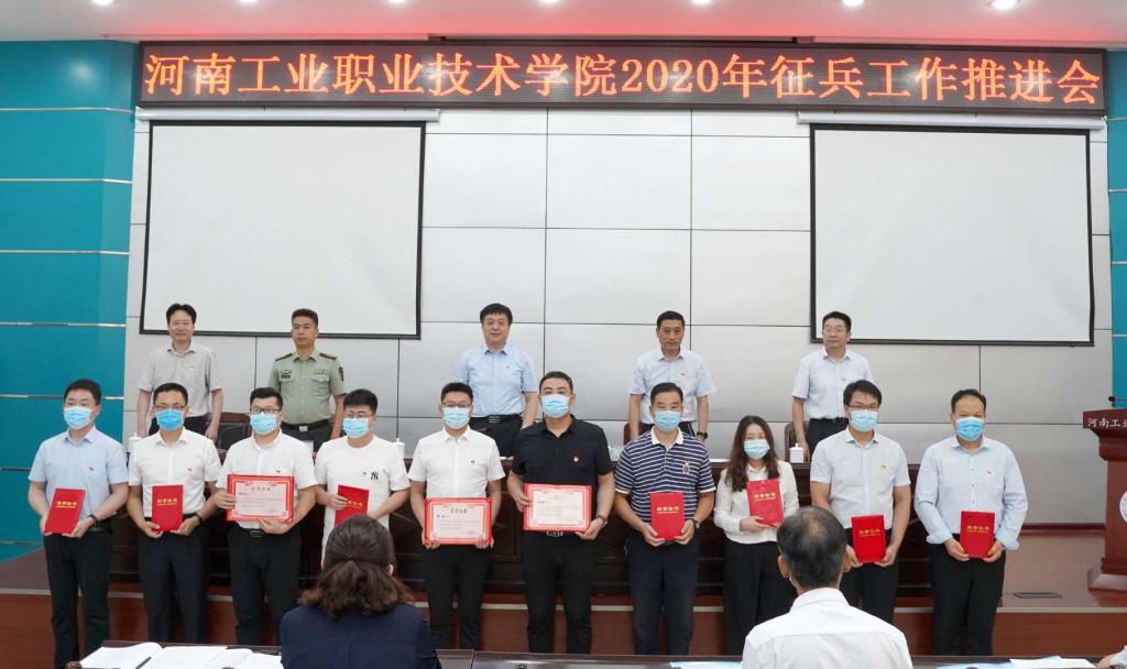 会上,工会主席屈保中总结了我校2019年征兵工作,安排部署了2020年大学生征兵工作任务。副校长王仁伟宣读了《学校关于表彰2019年度征兵工作先进集体和个人的决定》,与会领导分别为汽车工程学院、城市建设学院、机械工程学院、经济管理学院、环境工程系五个征兵工作先进集体和杨亮等十名征兵工作先进个人代表进行颁奖。城市建设学院党总支书记王兴举作为征兵工作先进集体代表做了经验交流发言。宛城区人武部部长赵耕对学校近年来征兵工作所做出的成绩给予了充分的肯定,并对做好学校2020年征兵工作提出了建议和要求。