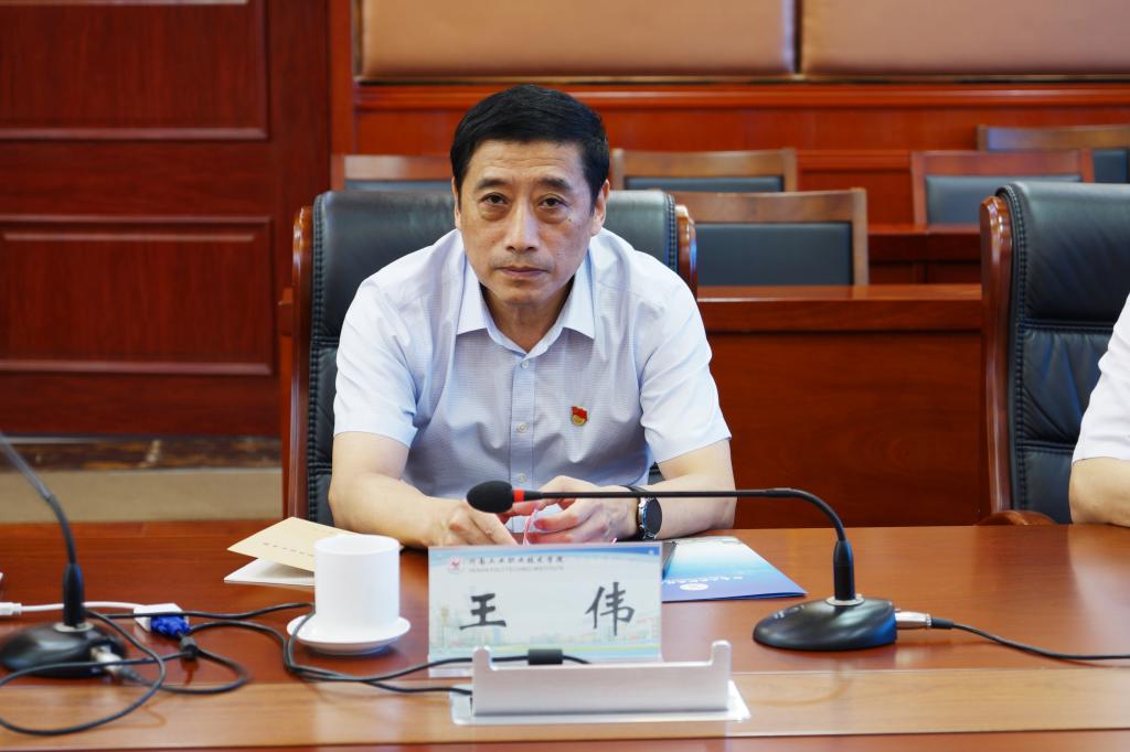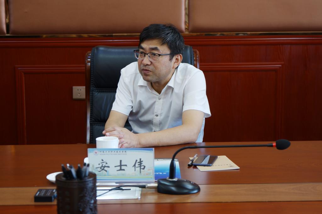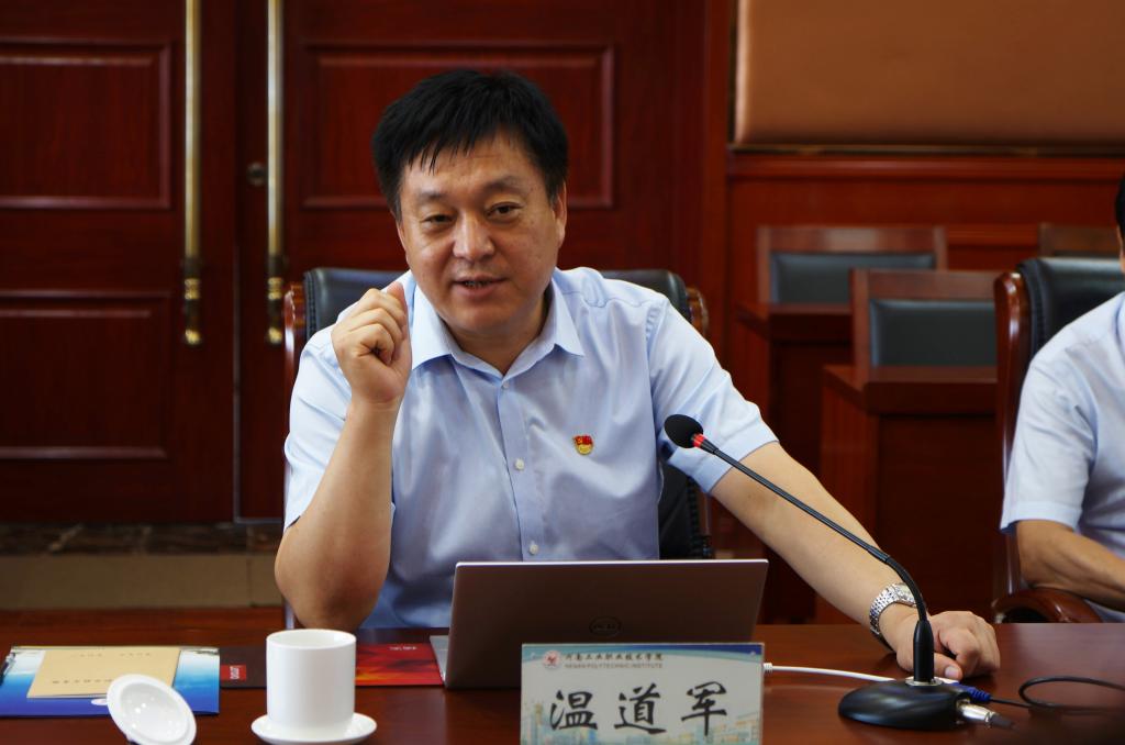 学校党委书记温道军代表学校对南阳理工学院的来访表示热烈欢迎,并介绍了学校的基本情况和2019年以来学校在“双高”建设、“三教”改革、技能大赛、国际交流、平安校园建设、省级文明校园标兵创建等方面所取得的显著成绩。