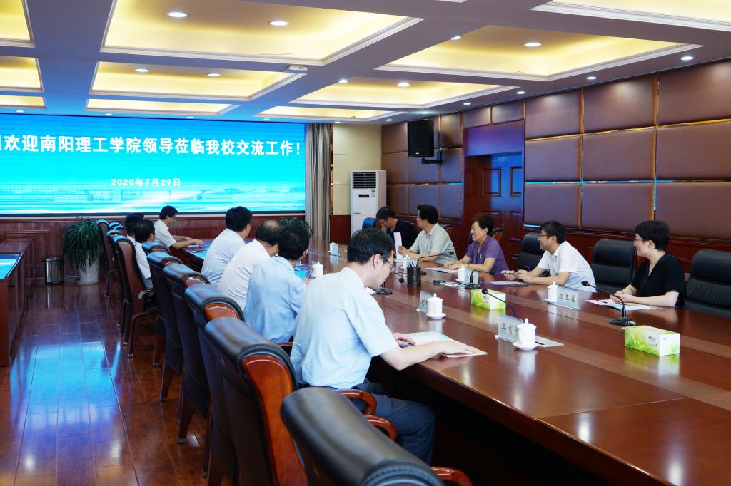 2020年7月29日,南阳理工学院党委书记刘荣英、校长安士伟等一行到我校访问,学校校领导温道军、王伟、杜建根、王仁伟、刘纪山、李荣胜、樊有平,党政办等单位负责人与来宾在行政楼第四会议室座谈交流,共话兄弟院校携手前行教育蓝图。