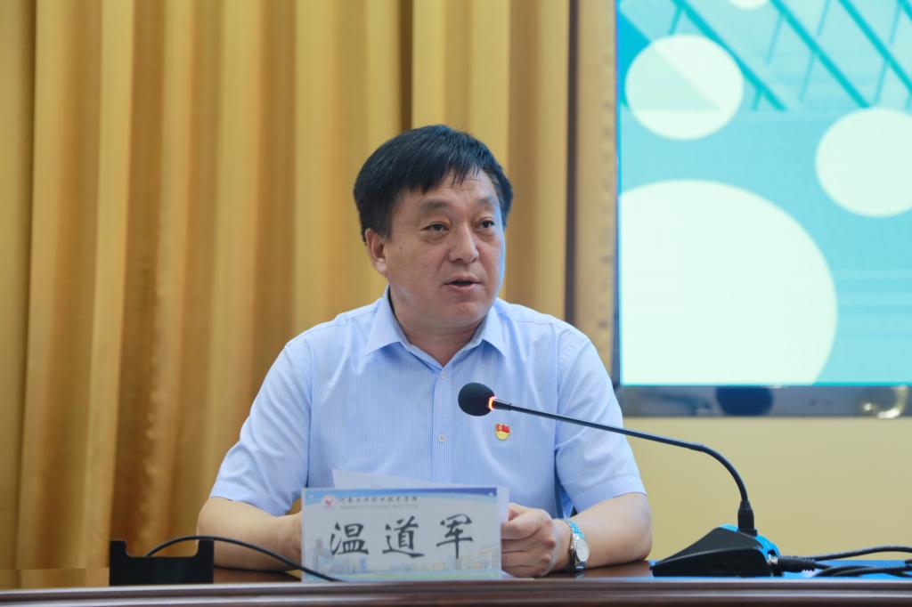 温道军在总结讲话中对谷建全院长来我校作专题讲座表示感谢。他指出,谷院长的报告立论高远、内涵丰富,既有宏观视野和理论高度,又有实践特色和个人思考;既准确把握中央精神,紧密结合当前形势,又详细阐述了我省经济发展走向及面临的机遇与挑战,精辟深刻的见解帮助我们洞悉当前宏观经济发展的趋势,帮助我们寻找在经济新常态下尤其是后疫情时代的发展思路和应对措施,具有很强的前瞻性、针对性和指导性。他强调,我们要认真学习、消化吸收谷院长讲座精神,紧密结合学校“双高校”建设,立足我省经济社会发展实际,提高分析研判国家大局、时代大势和经济社会发展问题的能力水平,深入思考谋划学校“十四五”事业发展,深入思考谋划学校专业群建设和专业结构调整,深入思考谋划产教融合校企合作和高质量发展,主动支撑国家战略,融入我省经济发展,服务产业升级,为我省经济社会发展作出新的更大贡献!