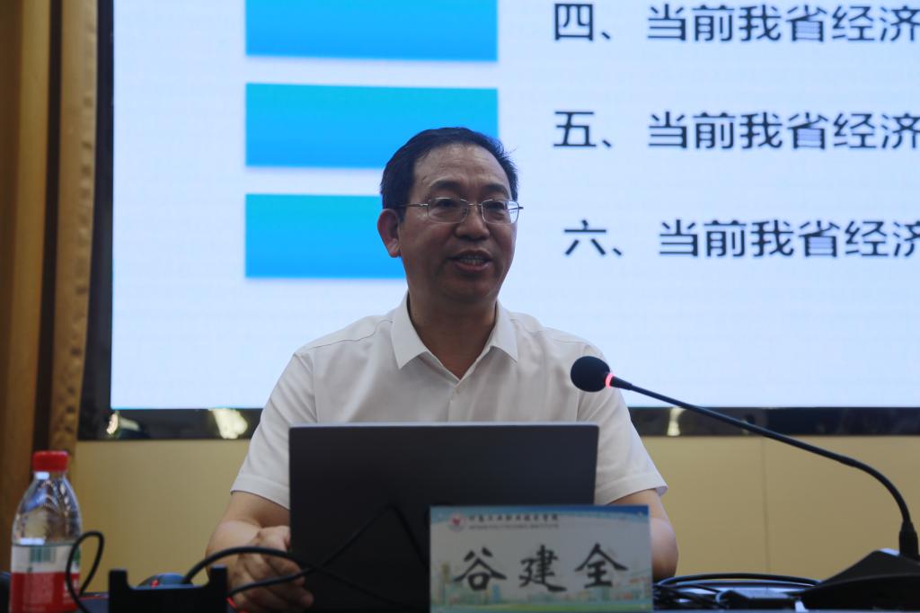 在三个小时的学术讲座中,谷建全首先从分析我国经济发展的新走向入手,深入解读了当前我国经济发展的新战略,深刻阐释了新时代下我国经济发展进入高质量发展、创新驱动发展、转型升级发展、绿色低碳发展、全面开放发展和跨越中等收入陷阱阶段等六个阶段的新特征。结合河南实际,谷建全认为,河南与全国一样正处于由经济大省向经济强省跨越的新起点上,面临跨越发展和转型发展双重任务。要准确理解把握这些新走向、新战略、新特征和新任务,从实施创新驱动发展战略、聚焦“四个强省”建设、加快改革开放步伐、大力推进新型城镇化、加强基础能力建设等六个方面,推动经济发展质量变革、效率变革、动力变革,在中部地区崛起中奋勇争先,谱写新时代中原更加出彩的绚丽篇章。