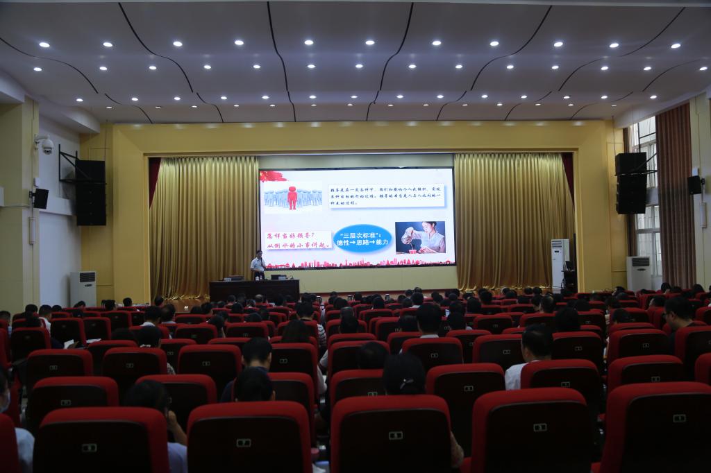 8月11日下午,学校暑期领导干部履职能力培训班第三场专题讲座在孔明路校区大学术报告厅举行。我校特邀南阳师范学院党委委员、副校长孔国庆教授,以《做“有德性、有思路、有能力”的领导》为题作专题讲座。学校领导温道军、王伟、杜建根、王仁伟、刘纪山、贾庆成、李荣胜、樊有平及副科级以上干部、教研室主任参加培训。讲座由党委副书记杜建根主持。