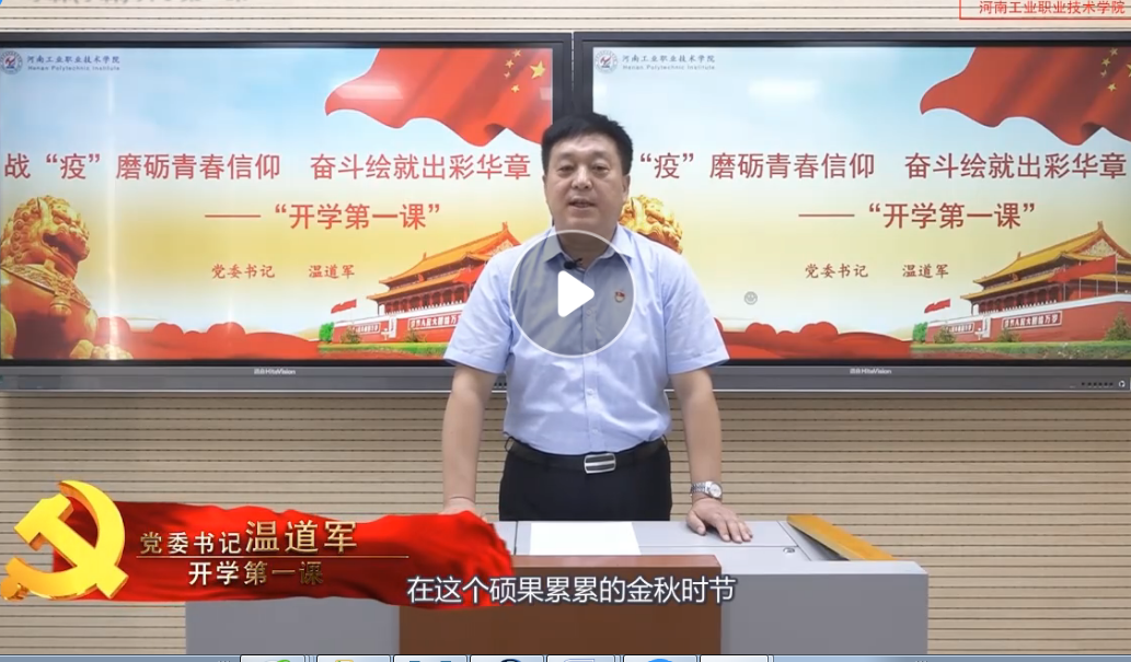 河南工业职业技术学院精心组织“开学第一课”,用“战疫”的鲜活教材,加强对学生的生命教育、信念教育、科学教育、道德教育,促使学生坚定理想信念、涵养家国情怀、砥砺奋斗精神,积极贯彻落实了高校立德树人的根本任务。(撰稿/杨爽 摄影/金天泽 编审/侯卓)