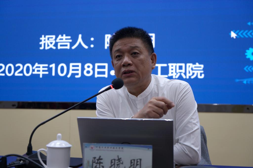 陈晓明主任结合机械行业发展情况,从职业教育高质量发展的时代背景、职教高水平专业建设的要素体系、职业院校专业建设创新的基本策略、机械行业推进产教融合的深化行动等四个方面,以社会经济发展为背景,聚焦制造业变革中的人才培养新需求,从职业教育发展新定位、产教融合新形态、职业教育高质量发展新路径、双高建设和专业建设新举措等多个方面,提出高质量职业教育发展的焦点问题解决思路和职业教育高水平专业建设的要素体系,为我校的下一步专业发展、校企合作和师资队伍建设等提供了宝贵思路与方法。