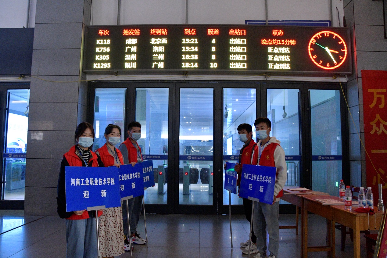 接站服务——我们的等待只为你。接站服务是迎新工作的第一站,为确保2020级新生安全便捷入学,10月12日以来,校团委提前筹划部署,在高铁站、火车站、汽车站分别设立新生接待服务站和迎新专用车,组织百余名学生骨干和志愿者奔赴站点做好信息咨询、校情讲解、交通引导以及行李搬运等志愿服务,多措并举全力做好迎新准备工作。迎新工作开始以来,学校广大师生志愿者枕戈待旦,迎新专用车从早晨7:00点到晚上19:00,驻守在南阳火车站、高铁站、汽车站,往返于孔明路校区迎新点和报到点之间,确保新生接站无滞留、无积压、运力无空缺,实现迎新从站点到校区的无缝衔接。