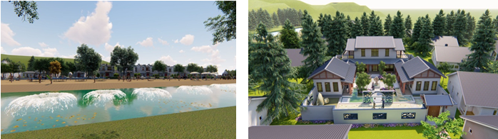 首先运用高分遥感技术对柳庄村进行测绘,再以特色塑造为核心目标,从山水格局、空间形态和文化风貌三个维度构建框架,设计特色建筑、文化活动广场、山间小木屋、沙滩公园等特色景观,为村庄带来经济效益、生态效益和社会效益。