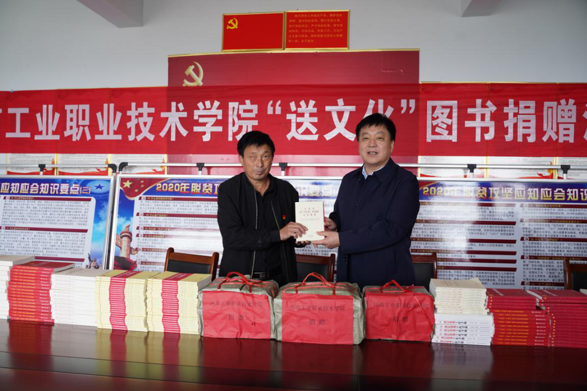 党委书记温道军向河坡村捐赠价值3万余元的图书。此次捐赠的图书有党建类、科普类和农业种植技术培训书籍800余册,进一步提高广大群众科普知识能力,用书籍弥补群众在技能方面的不足,提升致富能力,助力乡村振兴战略实施。