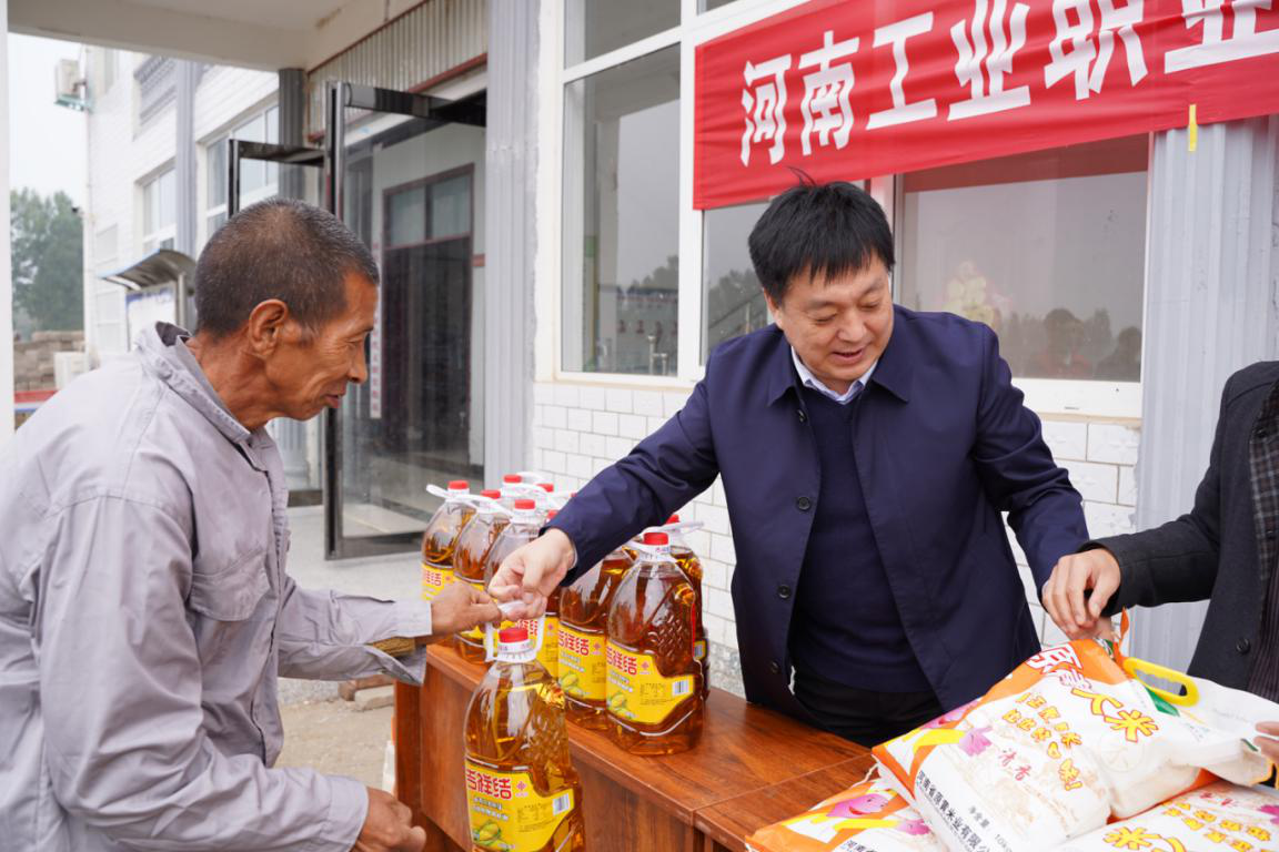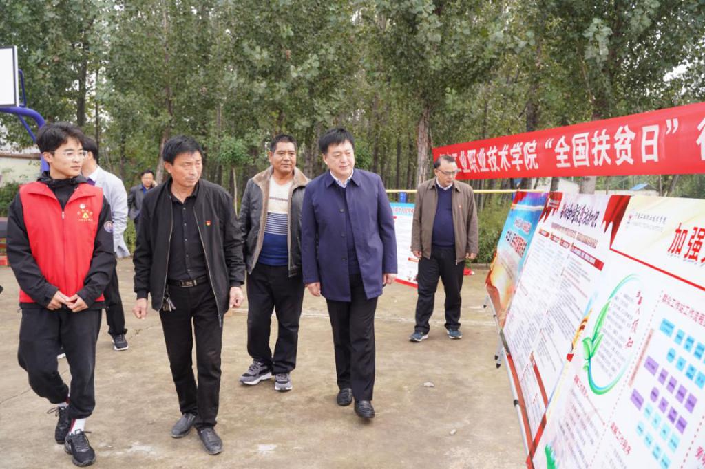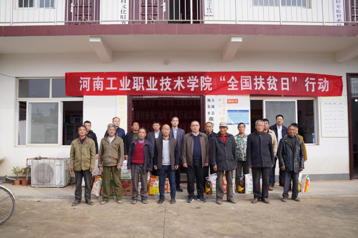 10月17日,在第七个全国扶贫日,我校在方城县杨集镇河坡村开展了扶贫日系列活动,校党委书记温道军、副书记杜建根、副校长王仁伟、刘纪山参加了活动,方城县杨集镇党委书记岳太斌、县统战部副部长李成飞和我校党政办、组织部等相关部门同志及驻村第一书记胡应占陪同。