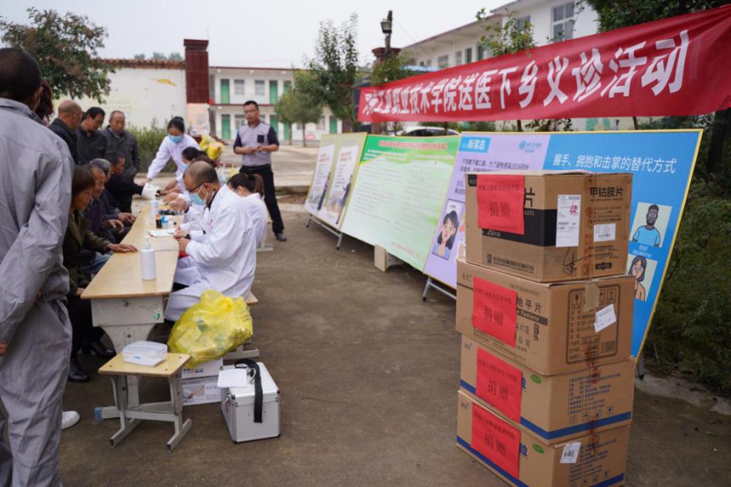在村委会文化广场上,校党委书记温道军向河坡村捐赠价值3万多元的药品,校医院的专家们开展了义诊活动,活动现场,人声沸腾,专家们为村民提供血压监测、中医内科、西医内科等健康检查项目,现场就检查出的问题,向村民详细讲解了诊疗方案和日常注意事项,医务人员向村民进行了秋冬季节常见疾病和新冠肺炎疫情预防知识的讲解。