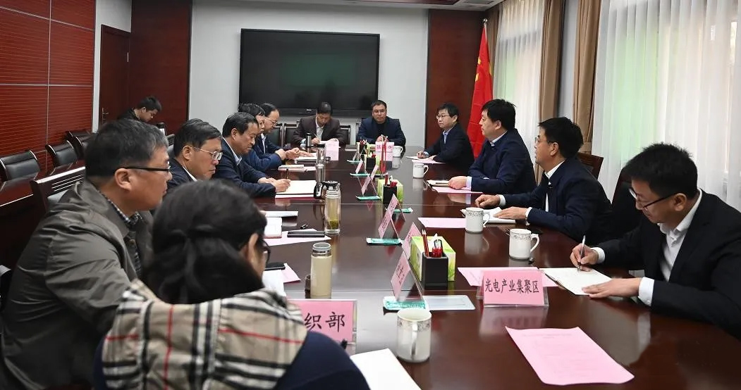 10月29日上午,党委书记温道军、副校长贾庆成带领党政办公室主任马小兵、机械工程学院院长朱成俊到卧龙区调研校地合作工作。卧龙区委书记高贤信,卧龙区南阳光电产业集聚区管委会常务副主任李宛生,区委常委、副区长周坚定,区委常委、区委办公室主任孙林儒,以及区委办、区政府办、区委组织部、区委人才办负责同志陪同调研。