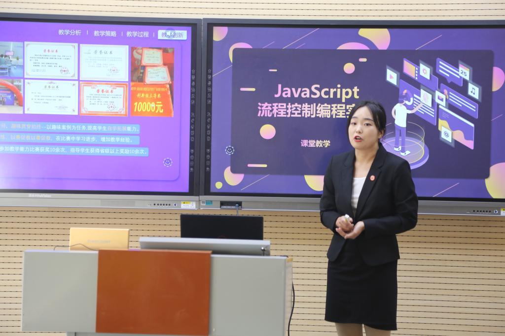 大赛激发了青年教师课堂教学创新的内生动力。《中华优秀传统文化》等课程融入课程思政,让学生感受时代的脉搏和国家的需求,延伸出知识背后的精神力量,深入系统地推进立德树人;《JavaScript交互设计》等课程利用信息技术,丰富课堂教学资源,创设更好的教学情境;《塑料成型工艺与模具设计》等课程弘扬新时代的工匠精神,宣扬劳动光荣、技能宝贵、创造伟大的价值观。校内评审专家逐一对作品进行精彩点评和悉心指导,并肯定了青年教师在探索实践中,实现了课堂教学“以教为中心”向“以学为中心”的转变,有效提升了教学创新能力和人才培养质量。