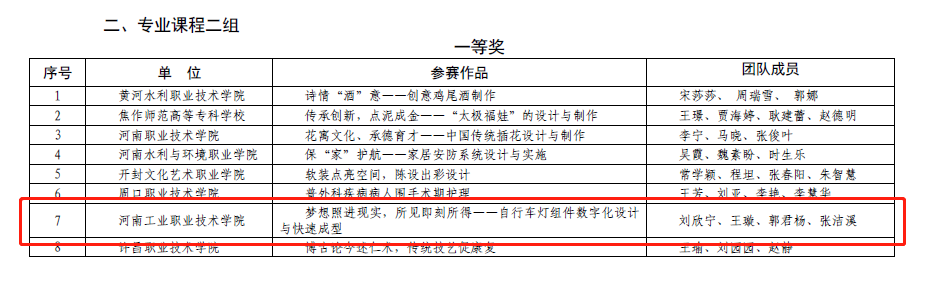 河南省省赛获奖结果公示