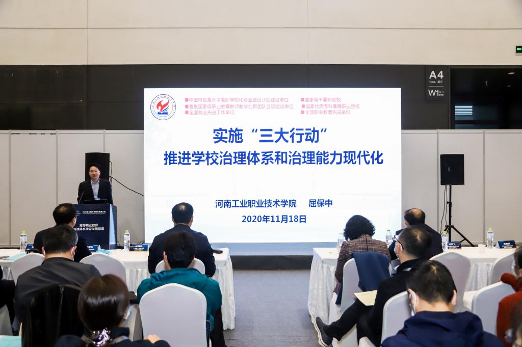 会上,工会主席屈保中代表学校做了《实施“三大行动”,推进学校治理体系和治理能力现代化》的专题演讲,介绍了学校近年来,坚持以习近平新时代中国特色社会主义思想为指导,认真贯彻落实十九届四中全会精神,以《国家职业教育改革实施方案》为根本遵循,以学校《章程》为基本准则,构建以“党委领导、校长负责、教授治学、民主管理、社会监督、开放办学、制度保障、文化引领”为主体的现代治理结构,形成了“目标明确、层次清晰、相互协调、充满活力”的现代治理体系,治理能力现代化水平得到了有效提升,先后荣获河南省“依法治教年”活动先进单位和“依法治校示范校”称号。
