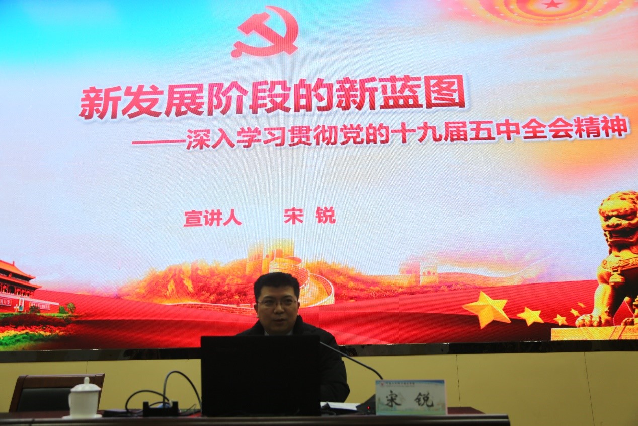 宋锐同志以《新发展阶段的新蓝图》为题,从深刻认识新发展阶段、准确把握高质量目标、着力构建新发展格局、全面贯彻新发展要求四个方面入手,围绕2035年远景目标和“十四五”时期我国经济社会发展的指导方针、主要目标、重点任务,就贯彻新发展理念、构建新发展格局、坚持以人民为中心、坚持改革开放、坚持党的全面领导等方面对全会精神进行了系统宣讲和阐释。宋主任的报告系统详尽、要点突出、概括准确,既有理论高度、思想深度,又有实践经验,又是行动指南,对全校党员师生贯彻党的十九届五中全会精神具有十分重要的意义。