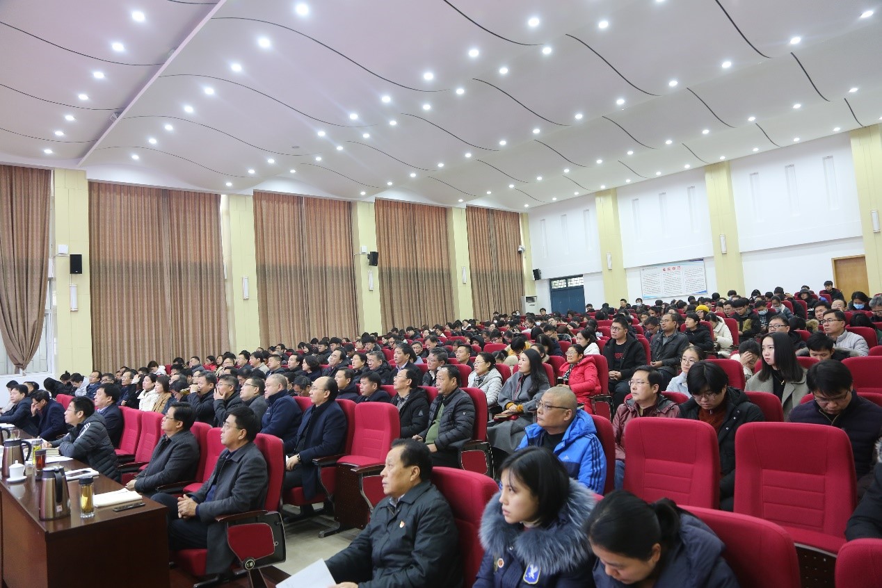 党的十九届五中全会是在我国即将全面建成小康社会、乘势开启现代化建设新征程的关键时期,召开的一次十分重要的会议。为了进一步宣传贯彻十九届五中全会精神,加强全校党员干部对十九届五中全会精神的理解。12月10日上午,学校特邀河南省青年理论宣讲专家、南阳市委党校宋锐讲师为师生做辅导报告。报告会在孔明路校区大学术报告厅举行,校领导温道军、王仁伟、刘纪山、贾庆成、李荣胜、屈保中、樊有平,全体中层干部、党员教师、学生代表聆听了报告会。报告会由校党委书记温道军主持。