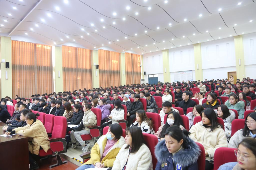 为全面贯彻落实习近平总书记在学校思想政治理论课教师座谈会上的重要讲话精神和中共中央、国务院《关于深化新时代学校思想政治理论课改革创新的若干意见》精神,弘扬伟大抗疫精神,12月22日下午,校党委书记温道军以《弘扬伟大抗疫精神 争做堪当大任时代青年》为题在孔明路校区大学术报告厅给我校师生讲授了一堂精彩的专题思政课。全体思政课教师、辅导员、学生代表400余人聆听学习。学习会由副校长樊有平主持。